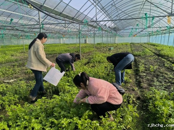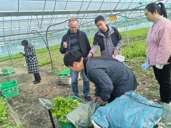核查组在龙潭镇熙溪地蔬菜企业芹菜种植大棚现场抽样