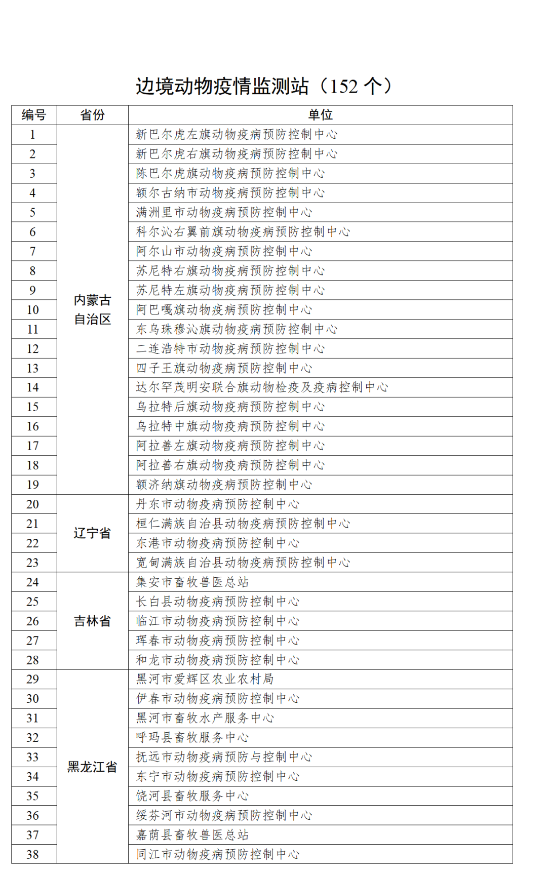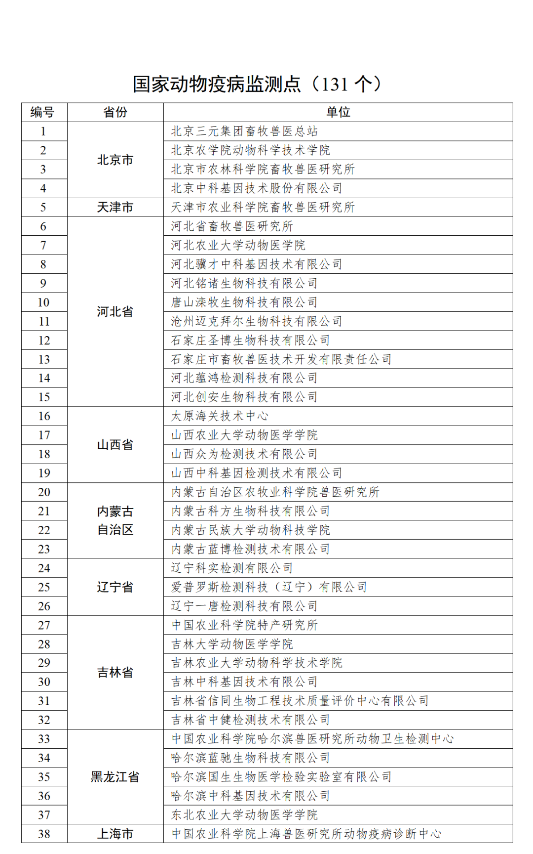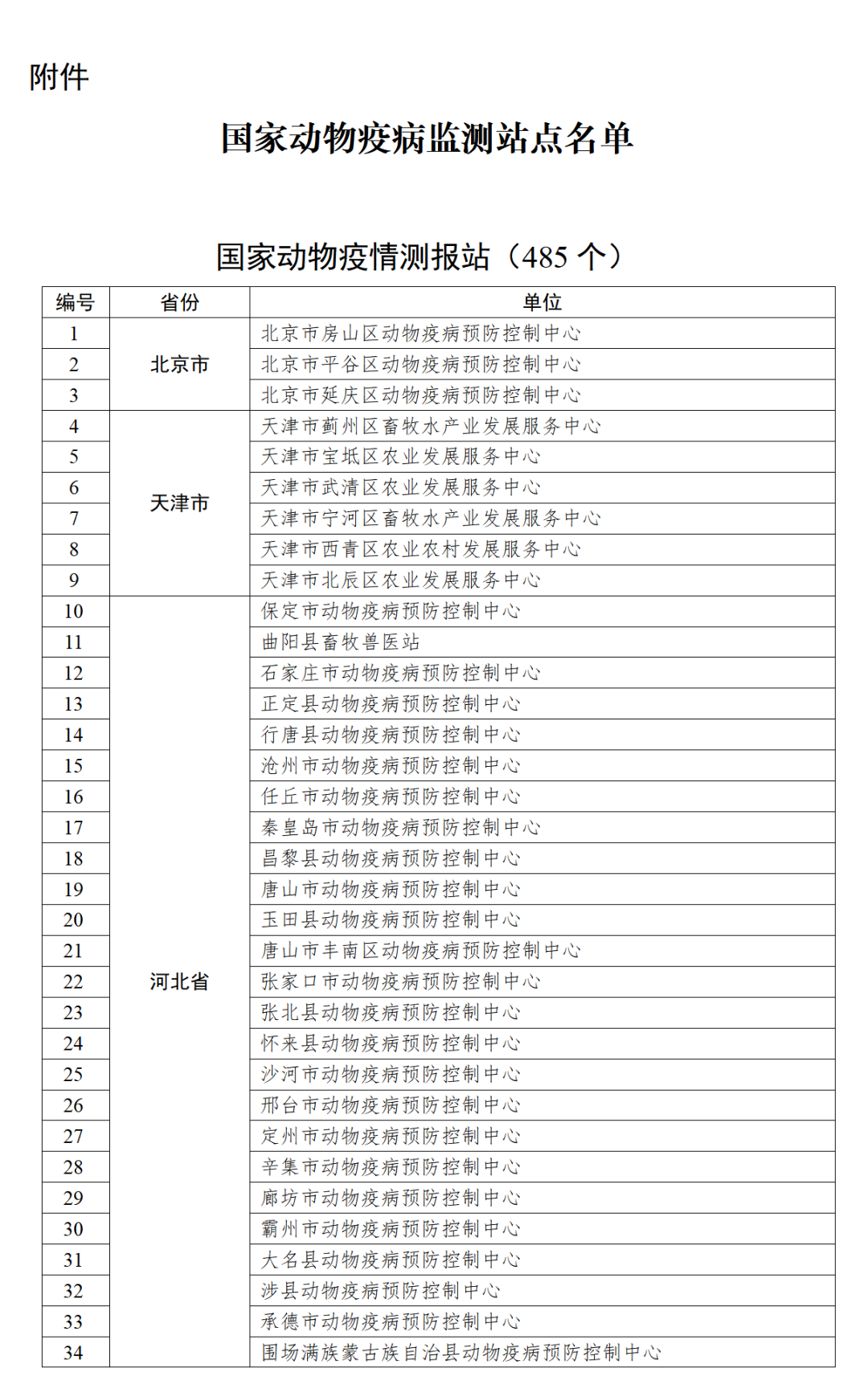 为贯彻落实动物防疫法规定,进一步健全完善国家动物疫病监测体系,农业农村部组织市县申请、省级推荐和部级专家评审,确定了768个国家动物疫病监测站点(以下简称“监测站点”,名单见附件),其中国家动物疫情测报站485个、边境动物疫情监测站152个、国家动物疫病监测点131个,有效期5年。