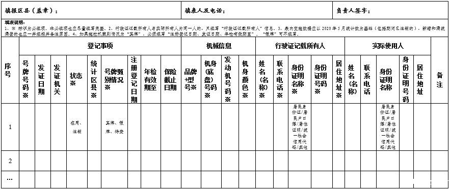 全市渝籍变型拖拉机信息已完成基础数据录入,各区县要根据本辖区变型拖拉机统计台账填报“外省籍变型拖拉机信息表”(见附件),填报数量要以2020年5月在册数为基础,新增和漏统漏登的,此次一并填报并进行备注说明,请于3月20日前将信息表电子件发送指定邮箱。信息表纸质件需经主管部门(机构)主要负责人签字并加盖单位公章,并寄至市变型拖拉机清零工作领导小组办公室(地址:重庆市江北区建新北路3号百业兴大厦20楼2023室),由系统开发方统一录入有关数据。