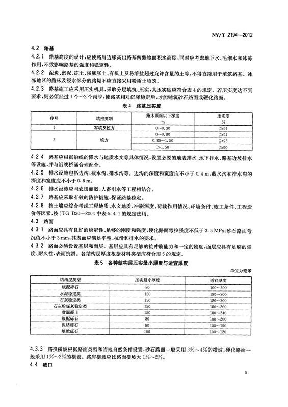 农业机械田间行走道路技术规范(NY/T 2194-2012)