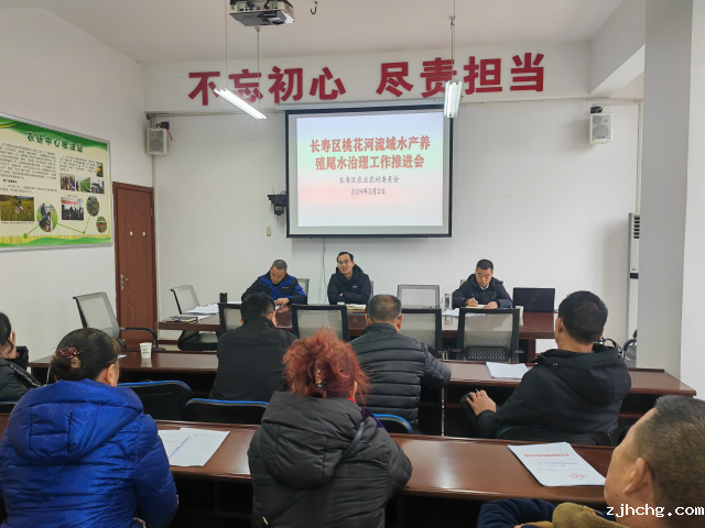 为全面深入推进长寿区桃花河流域水产养殖尾水治理达标排放工作,2月2日,长寿区水产技术推广站对八颗街道、新市街道、葛兰镇及三个街镇的水产养殖新型经营主体开展尾水治理技术培训及现场观摩。