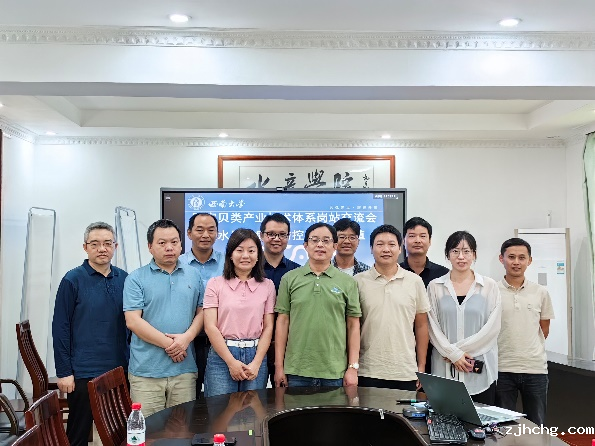 9月25-27日,国家贝类产业技术体系部分岗站科学家应邀到西南大学水产学院进行交流调研,本次交流调研主题为“淡水贝类病害防控与健康养殖”。参加本次调研人员有淡水珍珠贝养殖与育珠岗位科学家胡蓓娟副教授、病毒病防控岗位科学家白昌明副研究员、寄生虫病防控岗位科学家叶灵通副研究员、重庆综合试验站站长姚维志教授、金华综合试验站站长罗雨教授、三亚综合试验站站长赵旺副研究员,重庆市生态渔体系副首席、重庆市科技特派员、西南大学水产学院副院长吴正理教授及相关人员。会议由吴正理教授主持。