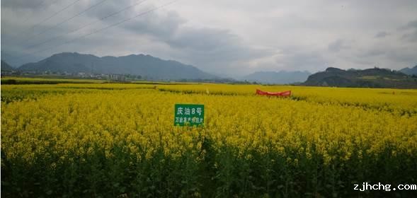 “庆油8号”油菜含油量达到51.54%、名列全国前茅,实现“两碗菜籽一碗油”。图为秀山县“庆油8号”万亩高产示范片。