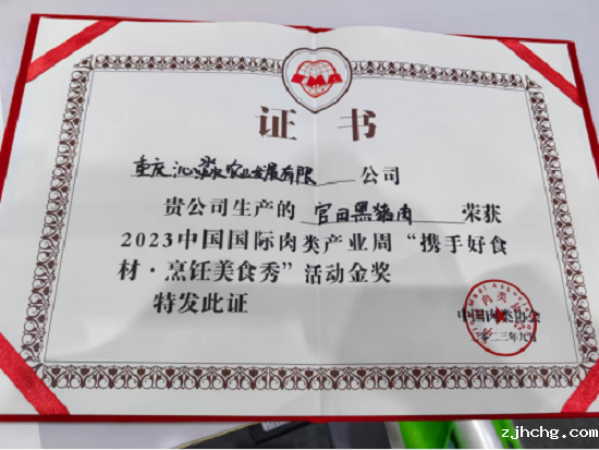 綦江:赶水“官田黑猪”荣获“2023中国国际肉类产业周携手好食材·烹饪美食秀”活动金奖