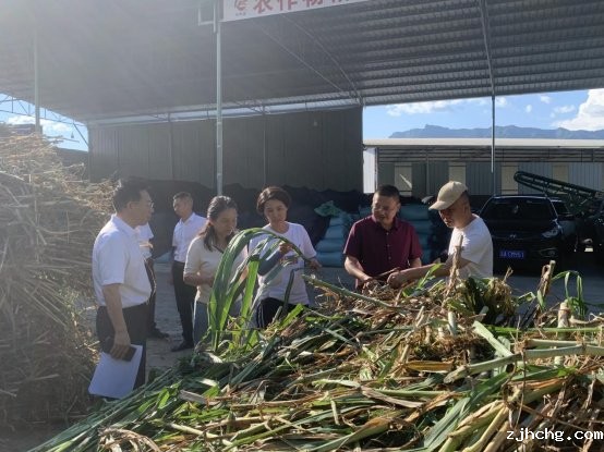 随后调研组前往该企业优质高产牧草种植示范基地及饲草收割现场。李发玉指出,现在农村劳动力少、青壮年劳动力更少,人力收割饲草成本较高,效率较低,在高温天气还存在安全隐患,机械化生产势在必行,机器替代人工,降低养殖成本,提升养殖效益,建议企业积极走出去学习参观,引进合适丘陵山地的机械,逐步实现饲草机械化耕种收。
