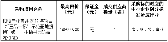 柑橘产业集群2022年项目(“三品一标”示范基地提档升级——柑橘果园防霜冻设施)采购公告