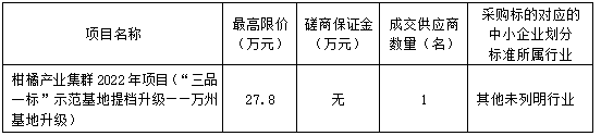 柑橘产业集群2022年项目(“三品一标”示范基地提档升级——万州基地升级)采购公告