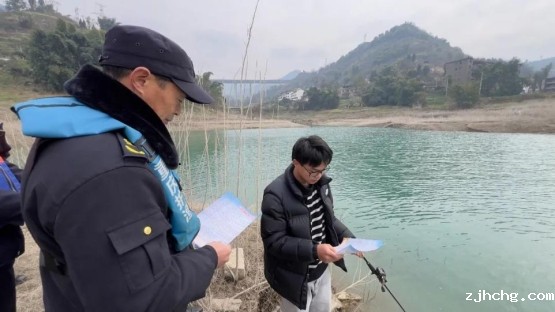 涪陵区:2月27日,涪陵区执法人员巡查乌江一带,看见有群众垂钓就立即停船,上岸宣传和引导钓鱼爱好者自觉遵守禁渔法规、规范休闲垂钓行为。