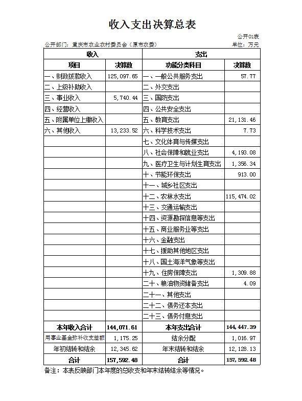 1.总体情况。本部门2018年度收入总计157,592.48万元,支出总计157,592.48万元。收支较上年决算数增加21,087.51万元、增长15.45%,主要原因一是工资福利支出、对个人和家庭的补助支出等基本支出的正常增长;二是在农业政策性担保、风险防范和农业科技推广服务等方面加大了投入。本部分的收入总计包括收入合计、用事业基金弥补收支差额、年初结转和结余,支出总计包括本年支出合计、结余分配、年末结转和结余。