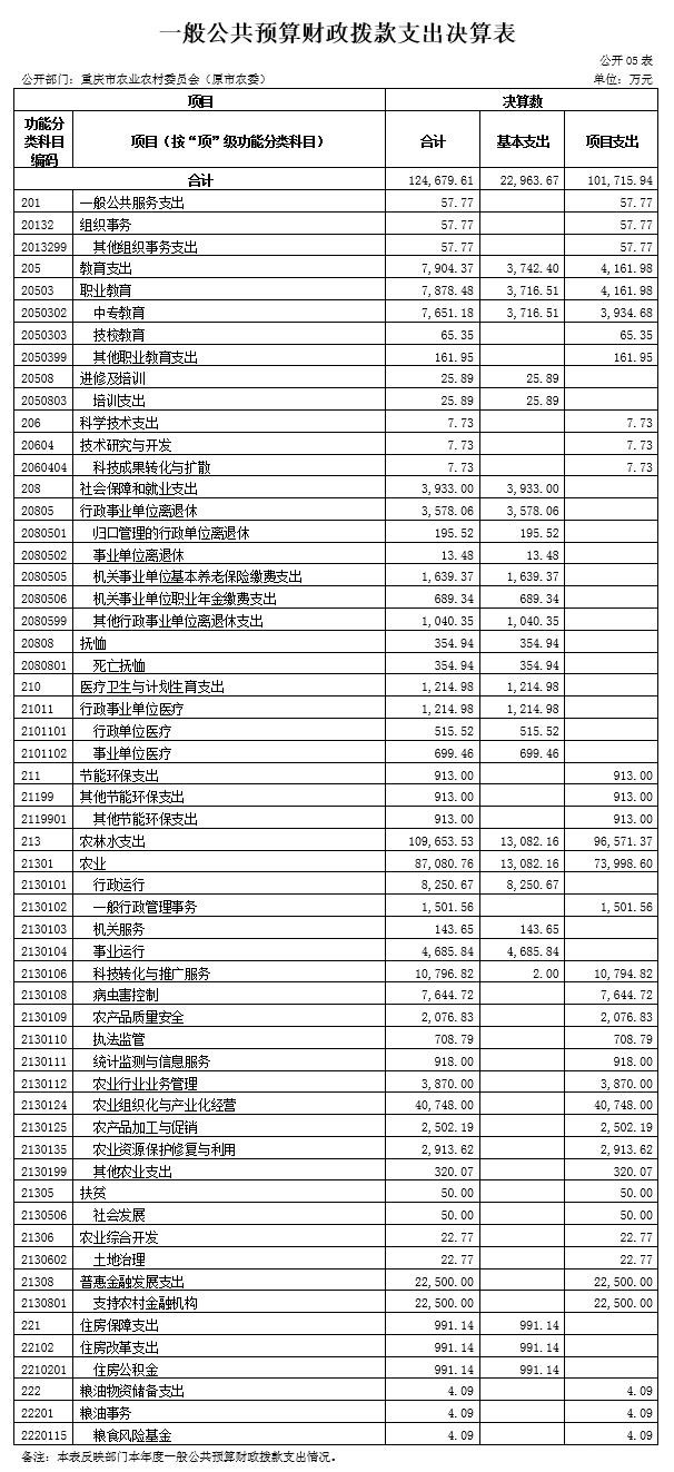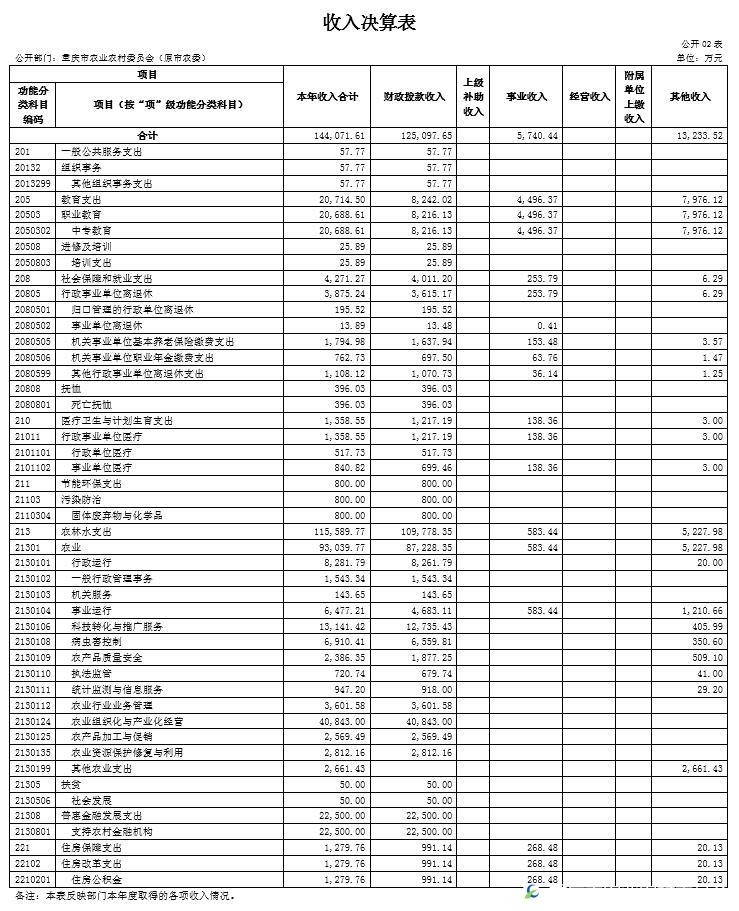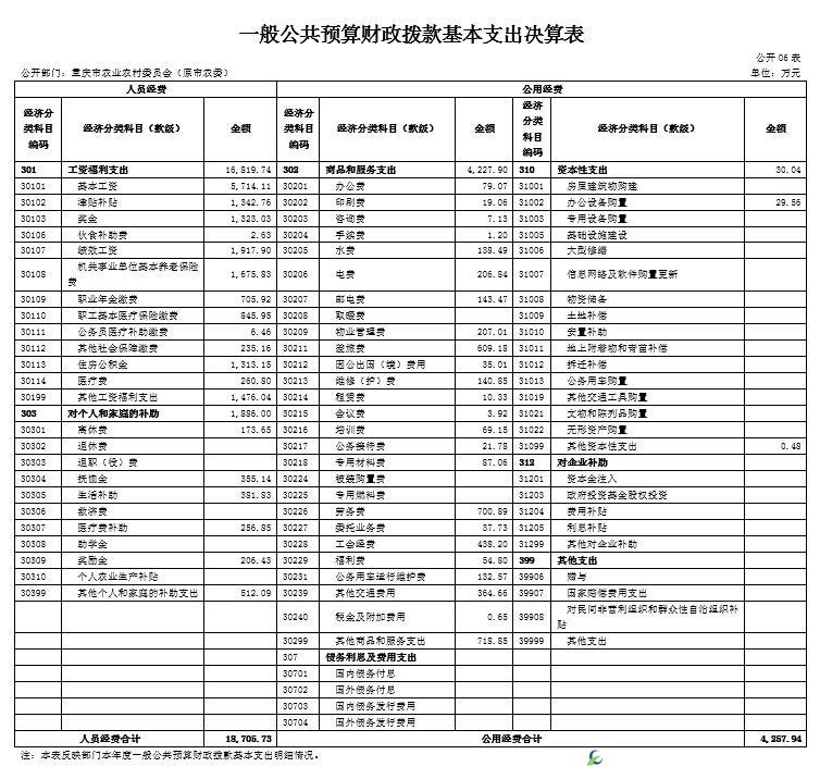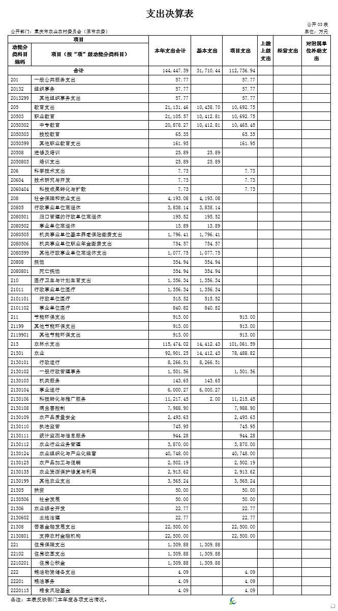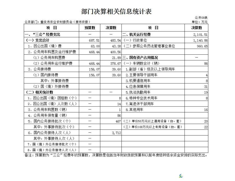 (二)单位构成。本决算由委机关及19个直属事业单位数据组成。分别是1个行政单位ac米兰足球直播入口机关;6个参公事业单位:重庆市农村合作经济经营管理站、重庆市种子管理站、重庆市渔政监督管理处、重庆市动物卫生监督所、重庆市农业行政执法总队、重庆市农机安全监理所;9个公益一类事业单位:重庆市农业生态与资源保护站、重庆市农业广播电视学校、重庆市水产技术推广总站、重庆市农业技术推广总站、重庆市畜牧技术推广总站、重庆市农业信息中心、重庆市农产品质量安全中心、重庆市动物疫病预防控制中心、重庆市农业机械化技术推广总站;4个公益二类事业单位:重庆市农业学校、重庆市农业机械鉴定站、重庆市农业机械化学校、重庆市农业委员会干部学校。此外,我委直属重庆市农业科学院、重庆市畜牧科学院为市财政一级预算单位,按照市财政分级管理要求,两单位决算数据不包含在本决算数据中。
