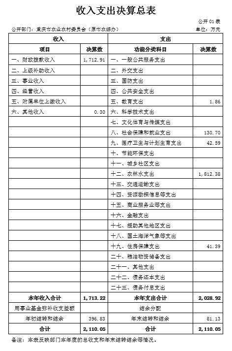 1.总体情况。本部门2018年度收入总计2110.05万元,支出总计2110.05万元。与2017年决算数相比,收支减少520.36万元、减少19.78%,主要原因是减少了科技推广项目。本部分的收入总计包括收入合计、年初结转和结余、其他收入,支出总计包括本年支出合计、年末结转和结余。