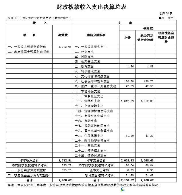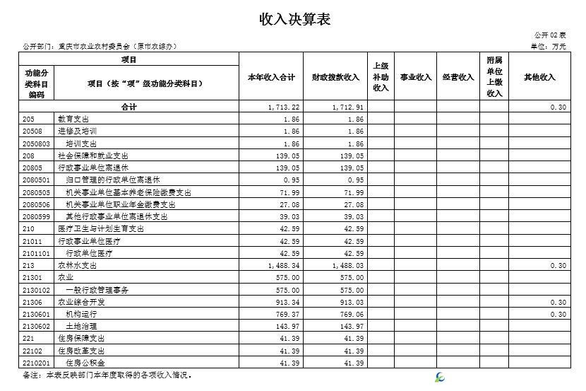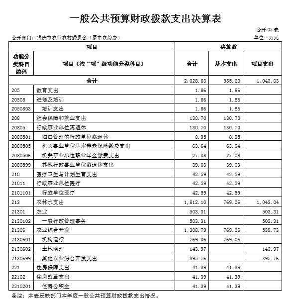 按照重庆市机构改革方案要求,本部门涉及机构改革,对此专门说明如下:一是机构改革要求。按照市委、市政府关于印发《重庆市机构改革方案的通知》要求,将原市农委、市农业综合开发办公室的职责,以及市发改委的农业投资项目管理、市国土资源和房屋管理局的农田整治、市水利局的农田水利建设项目管理职责等整合,重新组建市农业农村委,作为市政府组成部门。二是机构调整情况。目前已将重庆市农业委员会、重庆市农业综合开发办公室进行整合,重新组建ac米兰足球直播入口,原市农综办职能职责已划转至新部门。三是财政财务调整情况。2018年度机构改革正在推进过程中,根据本部门2018年末财政财务管理实际,2018年度决算仅反映改革前有关情况。2019年我们积极按照要求对预算指标、财务会计、资产等进行了调整。目前,已经完成财务会计合并。