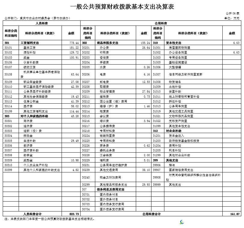 (五)基本支出:指为保障机构正常运转、完成日常工作任务而发生的人员经费和公用经费。其中:人员经费指政府收支分类经济科目中的“工资福利支出”和“对个人和家庭的补助”;公用经费指政府收支分类经济科目中除“工资福利支出”和“对个人和家庭的补助”外的其他支出。