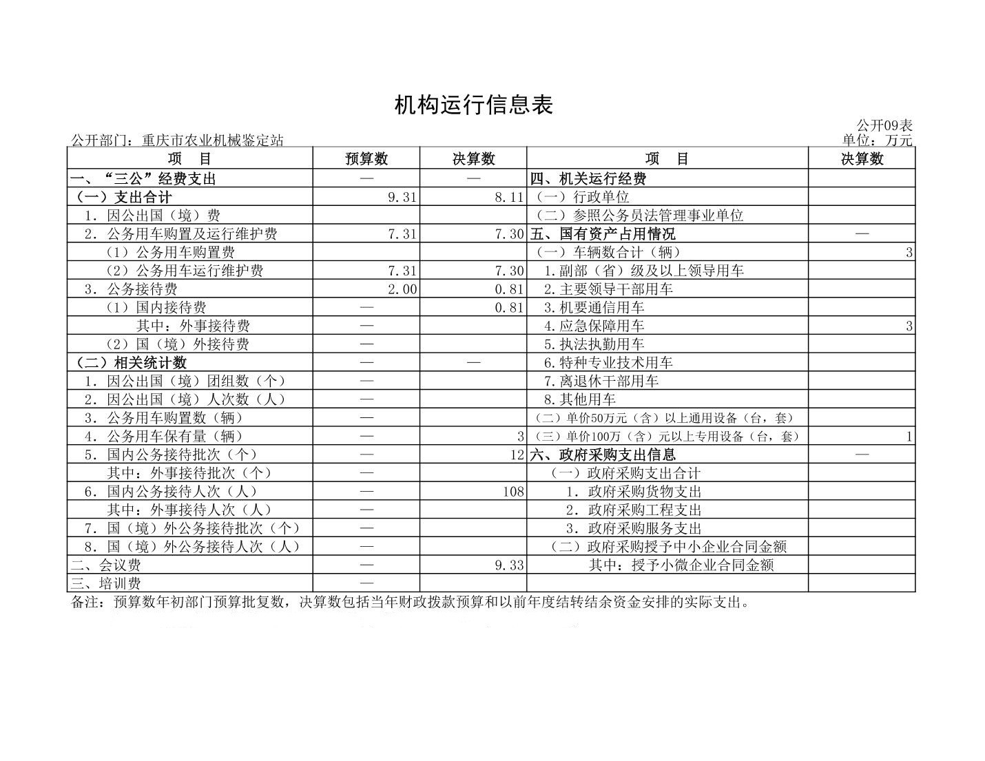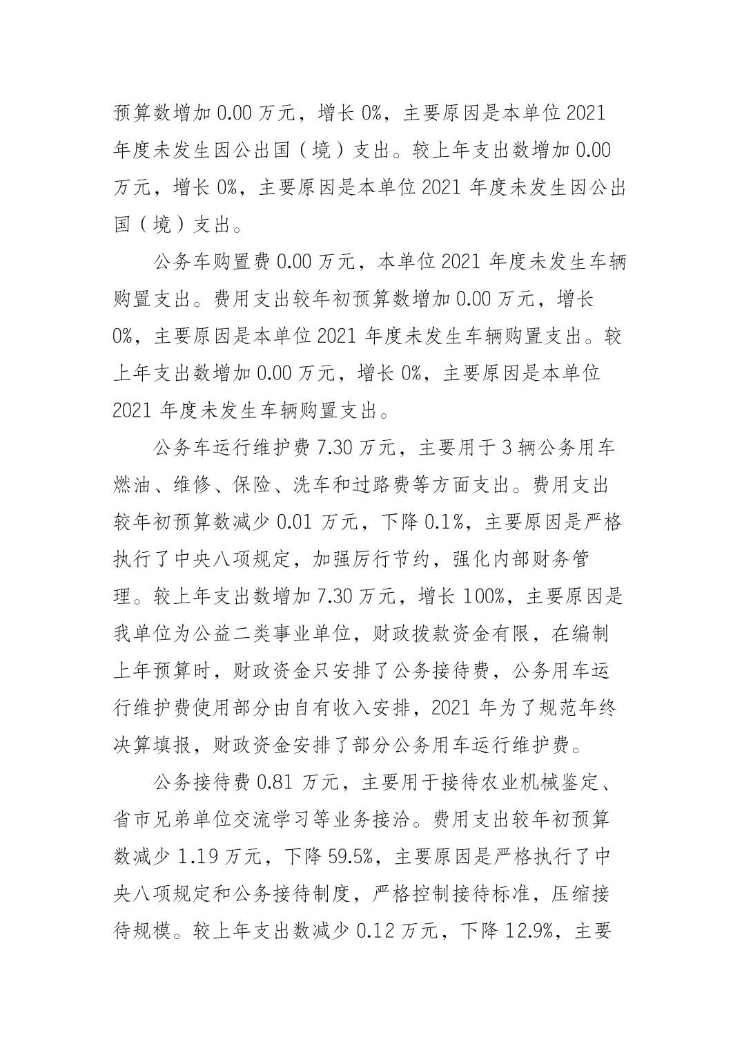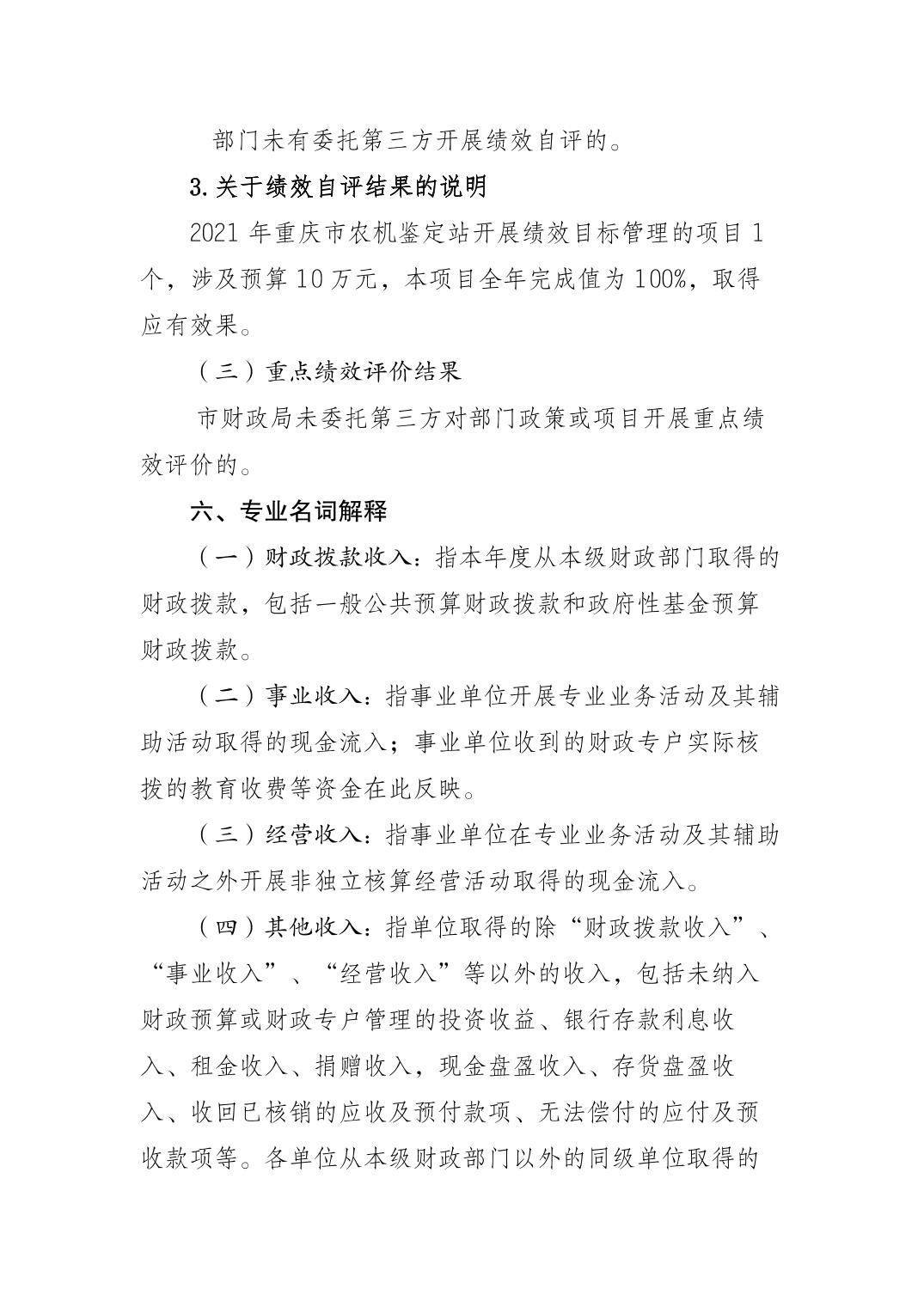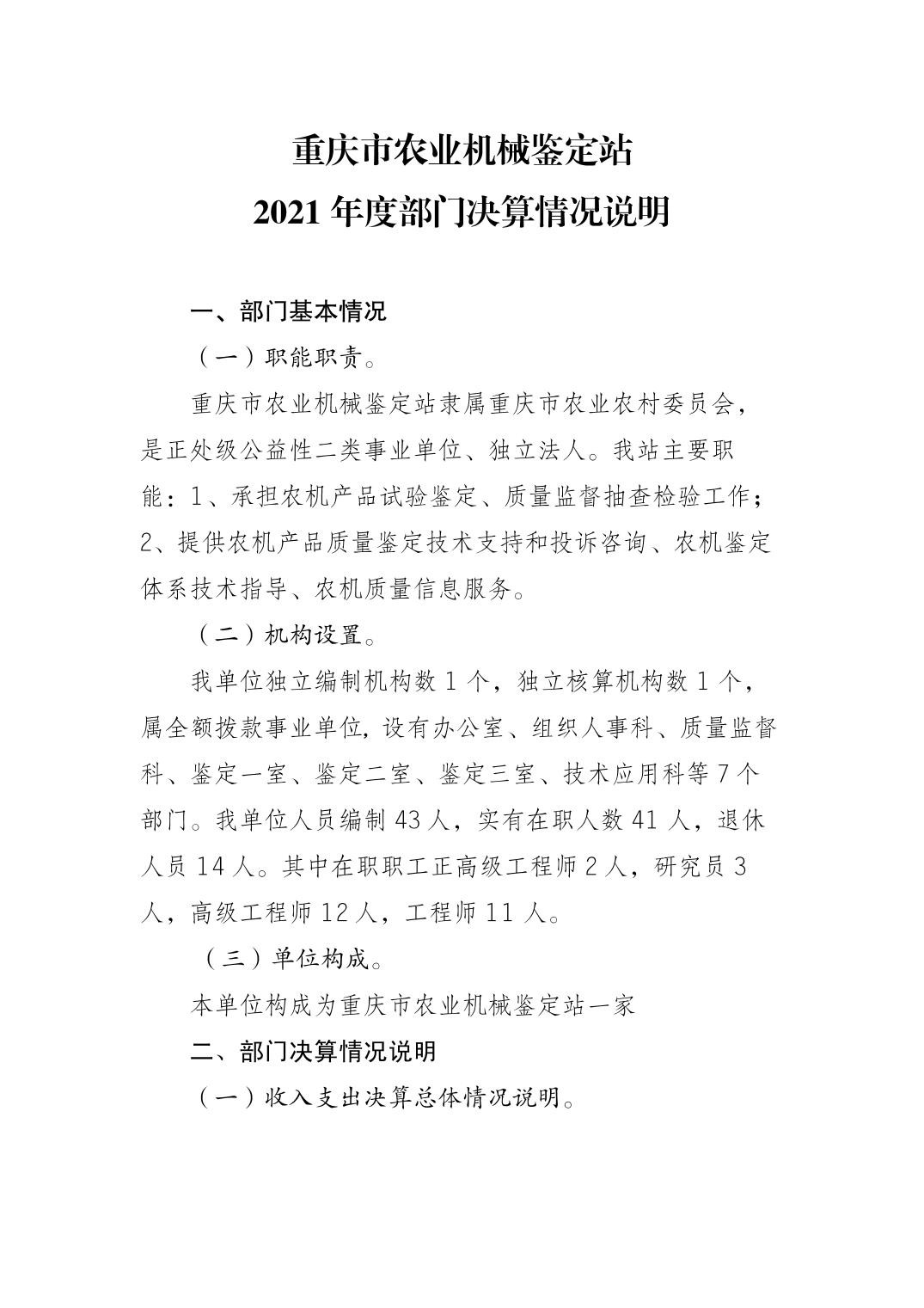 重庆市农业机械鉴定站2021 年度部门决算情况说明