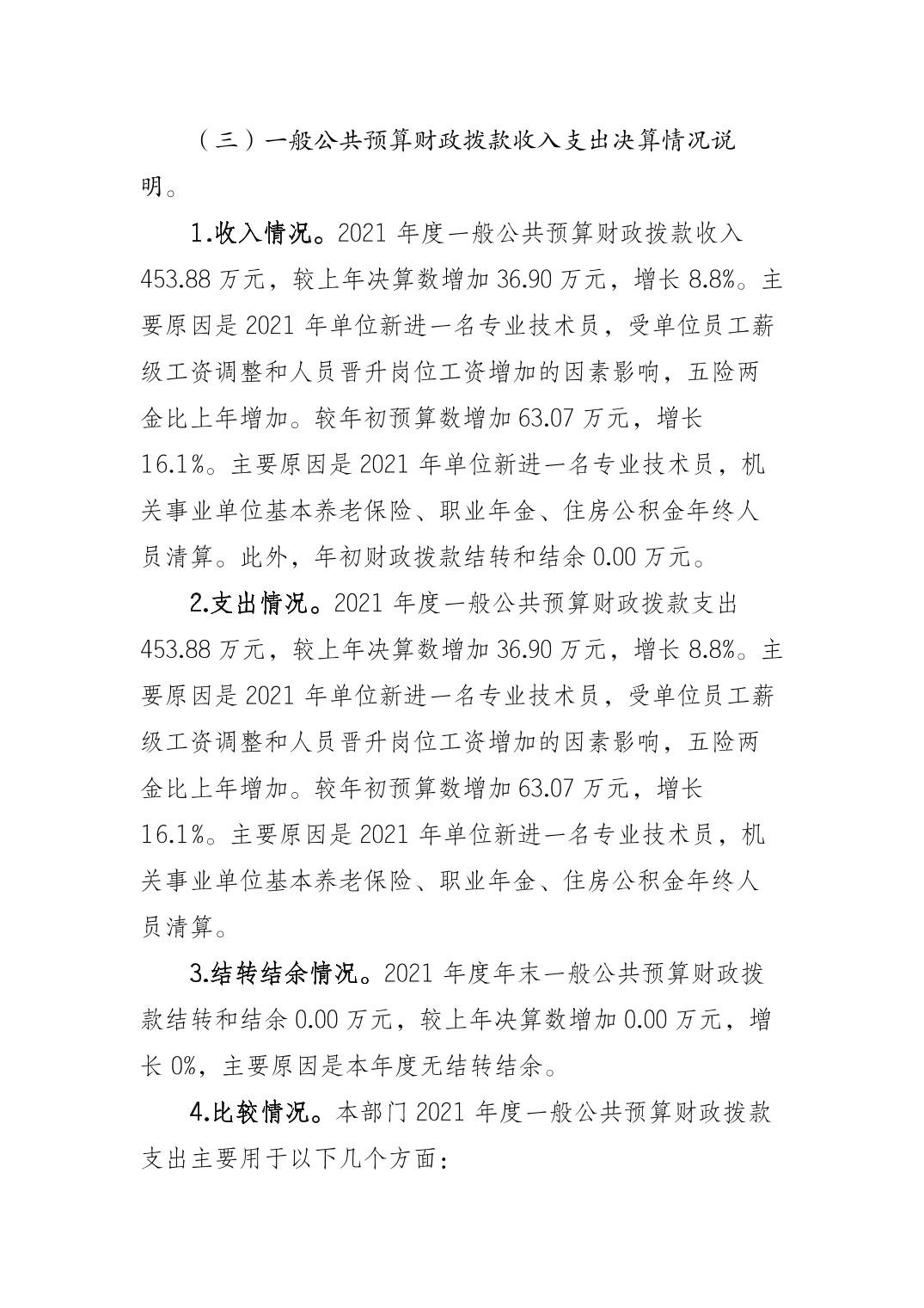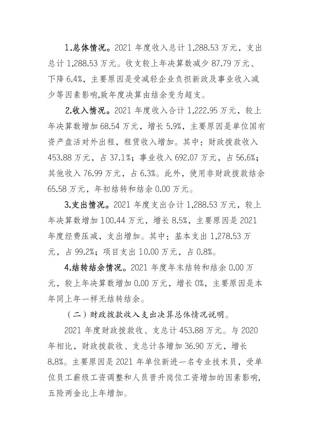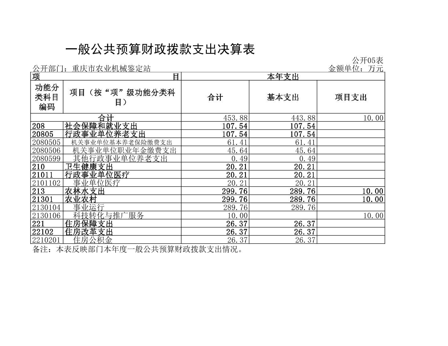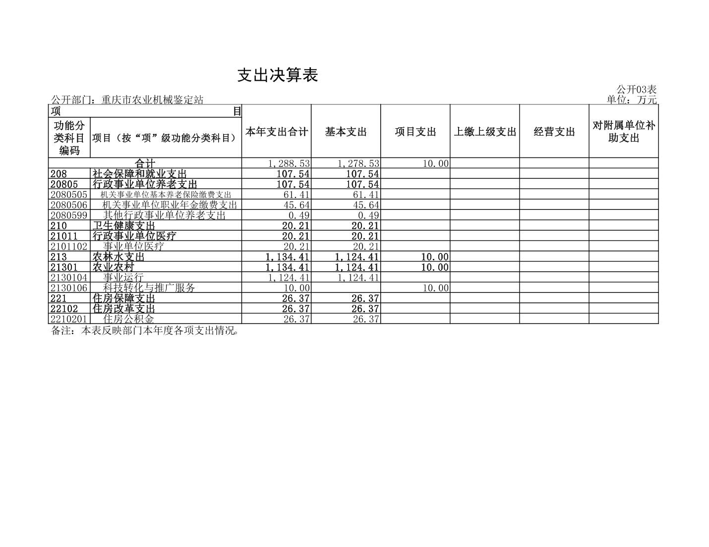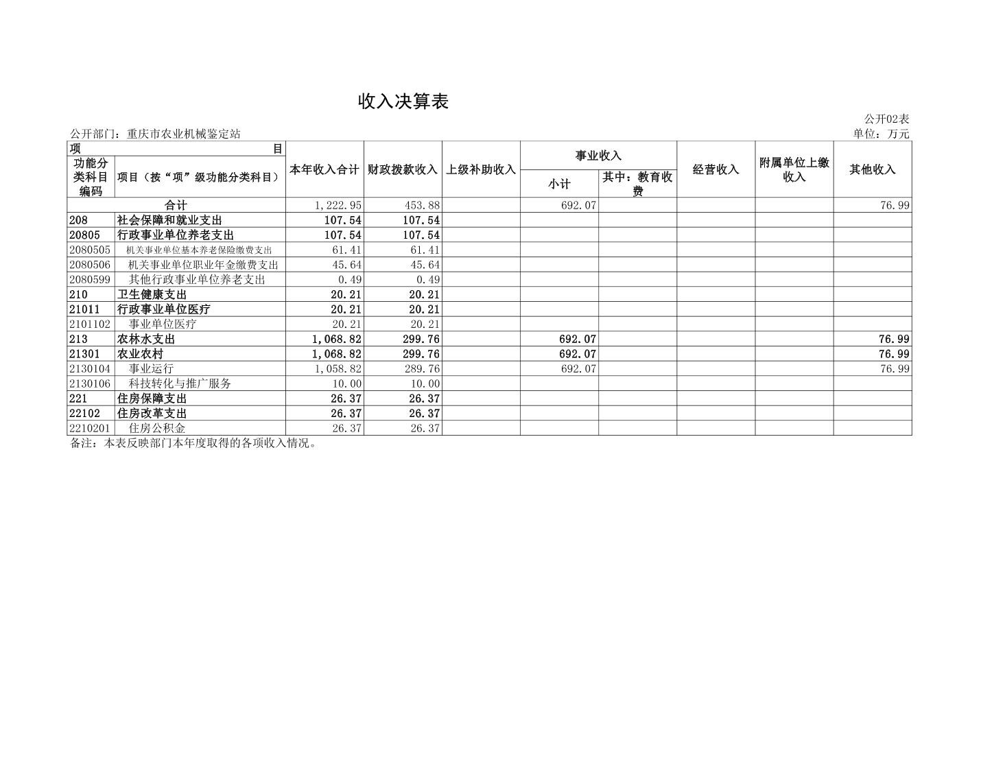 重庆市农业机械鉴定站2021 年度部门决算情况说明