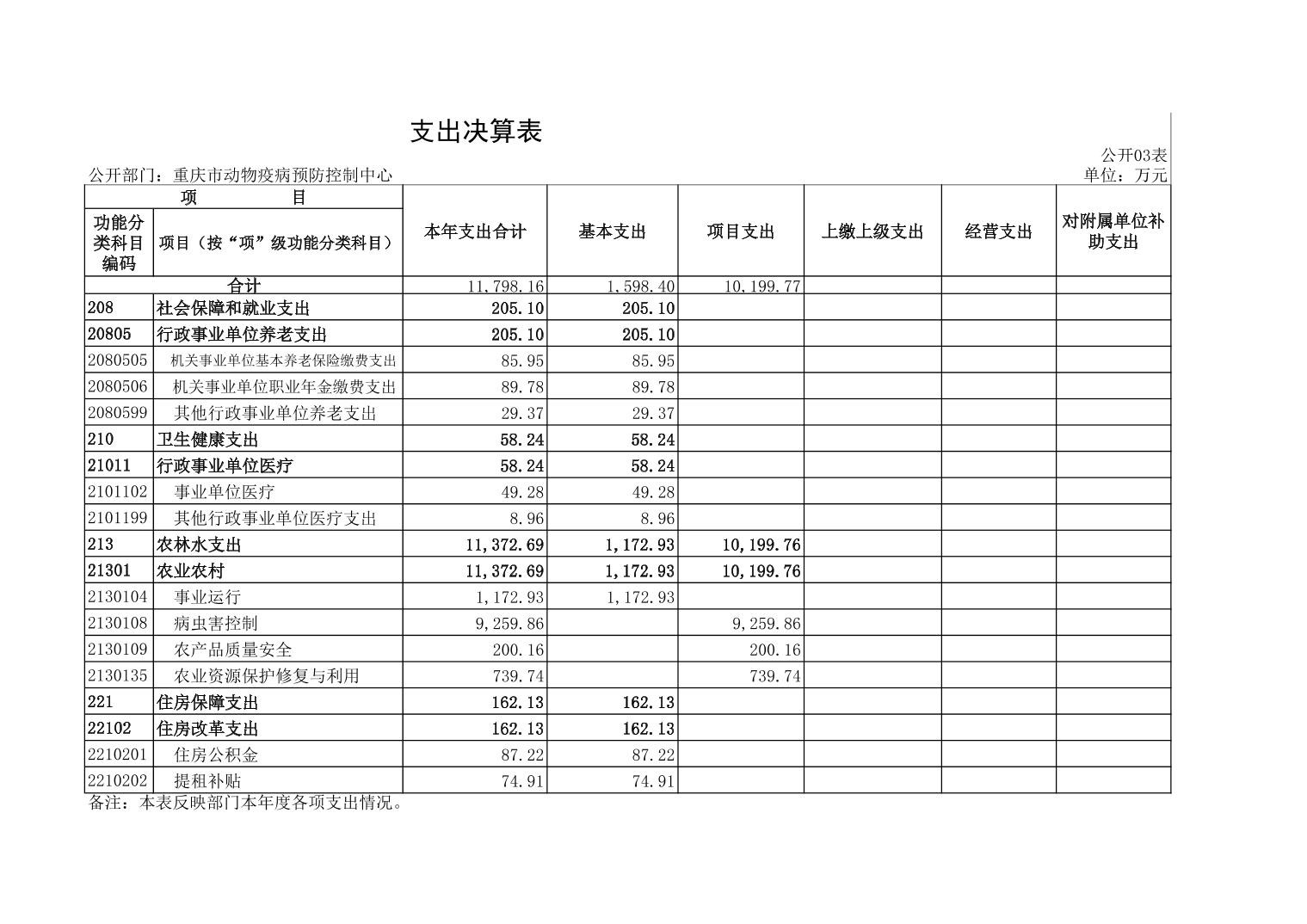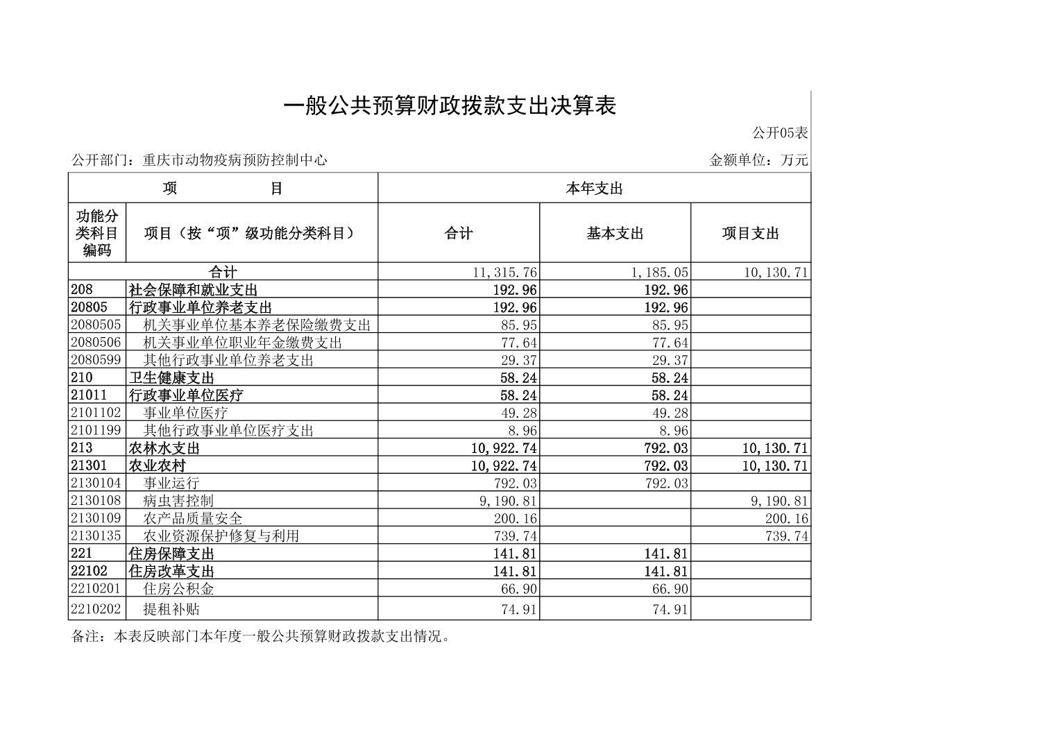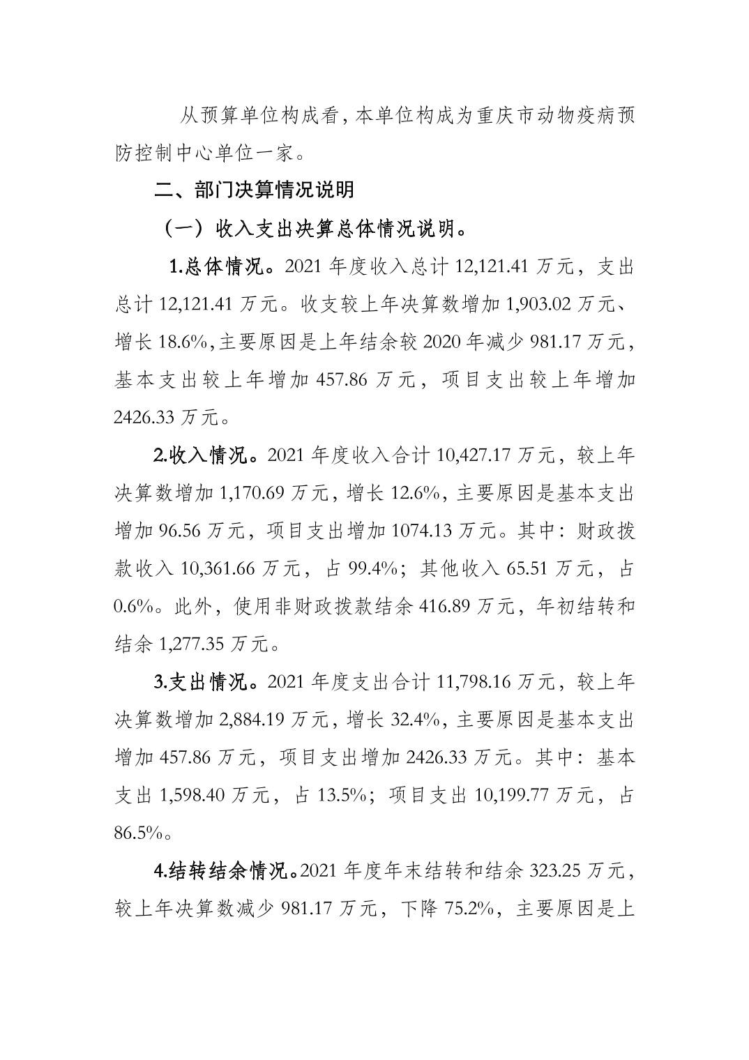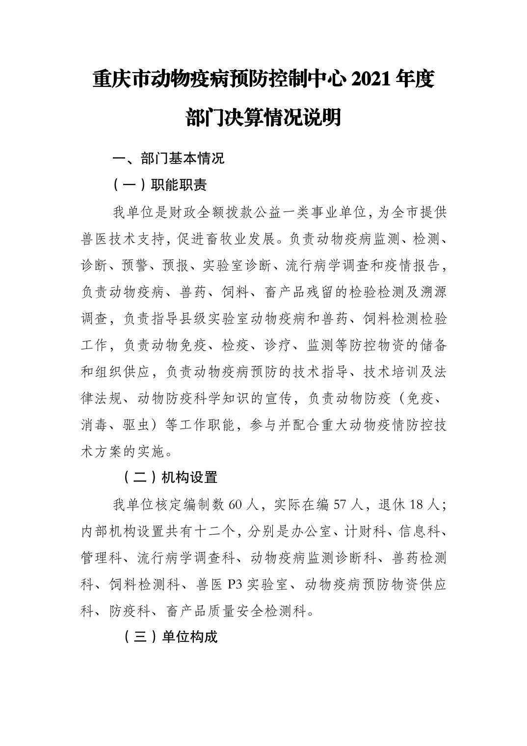 重庆市动物疫病预防控制中心2021年度部门决算情况说明