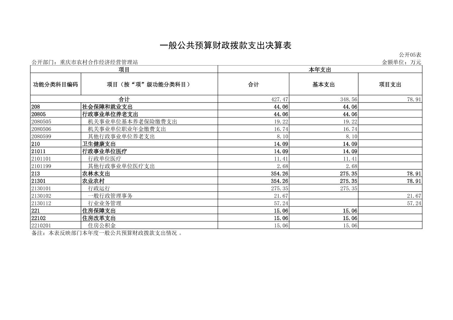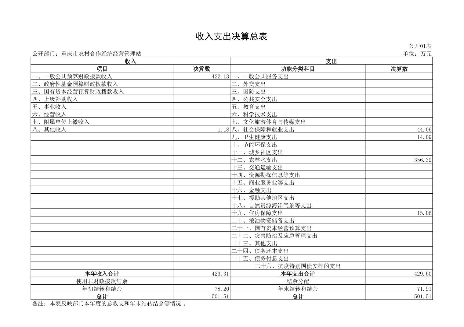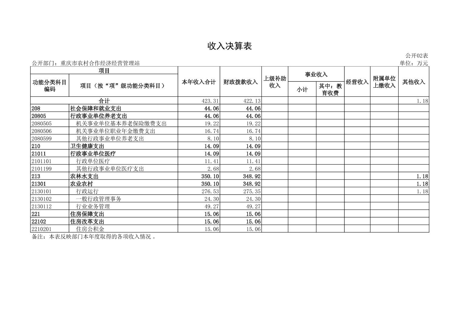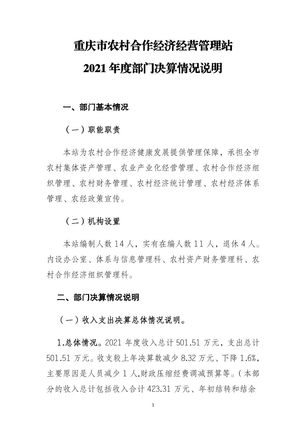 重庆市农村合作经济经营管理站2021年度部门决算情况说明