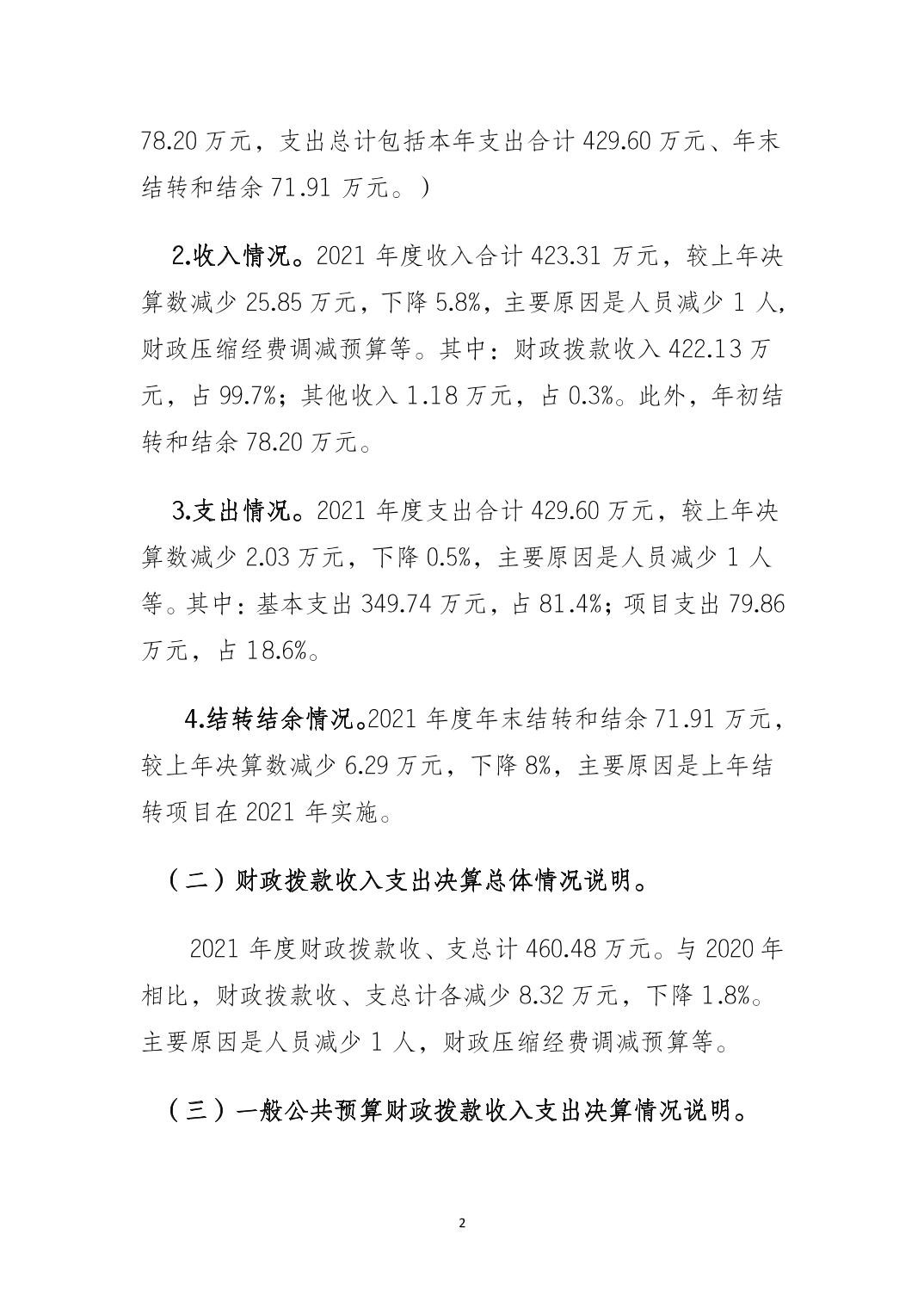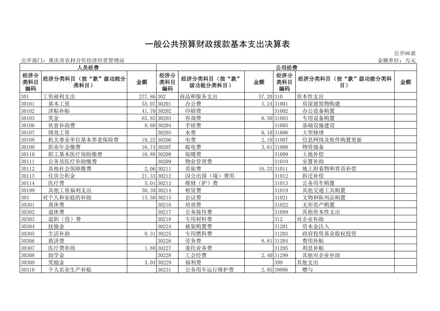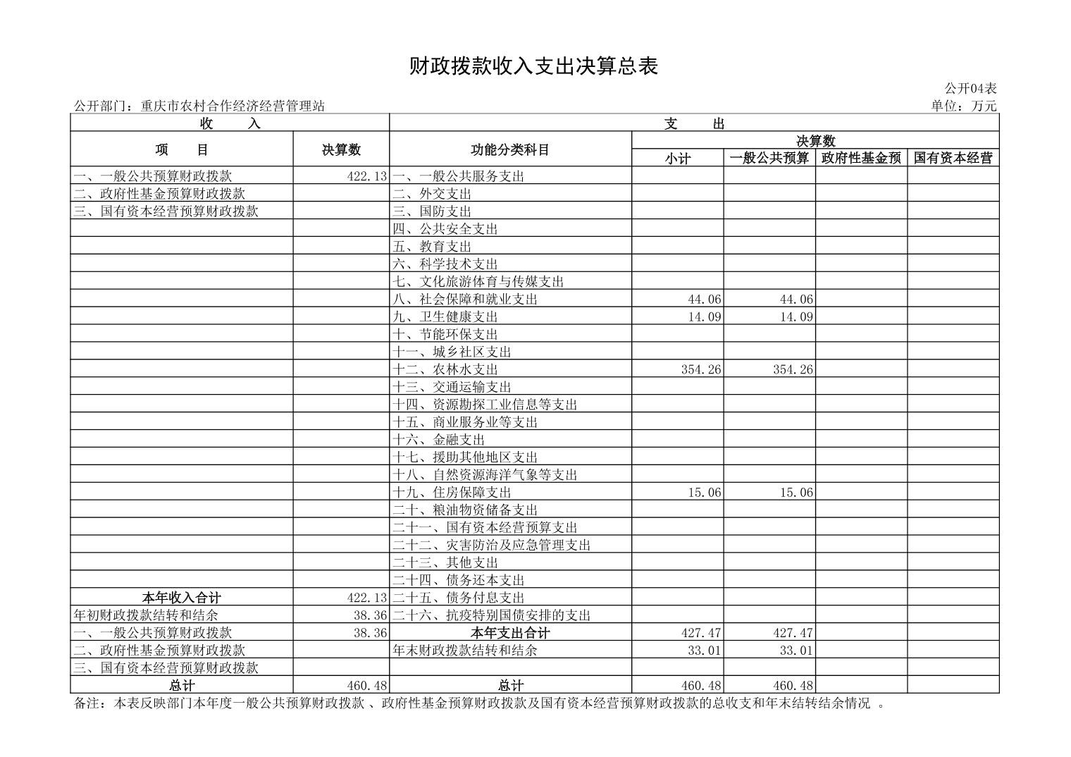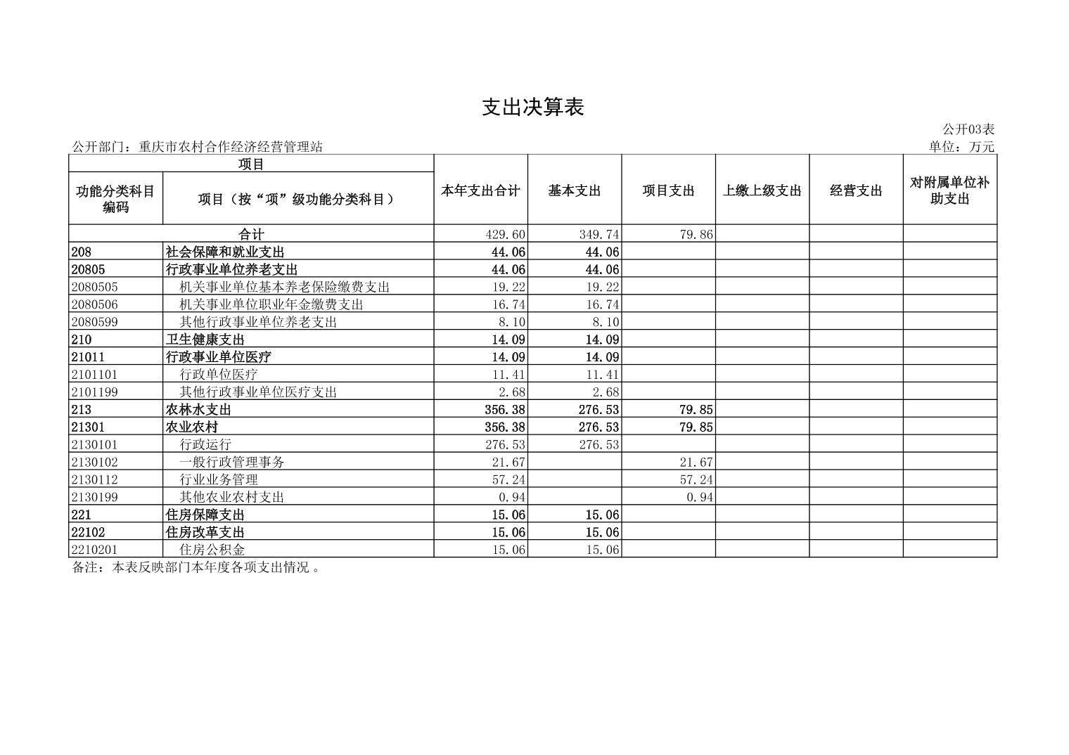 重庆市农村合作经济经营管理站2021年度部门决算情况说明