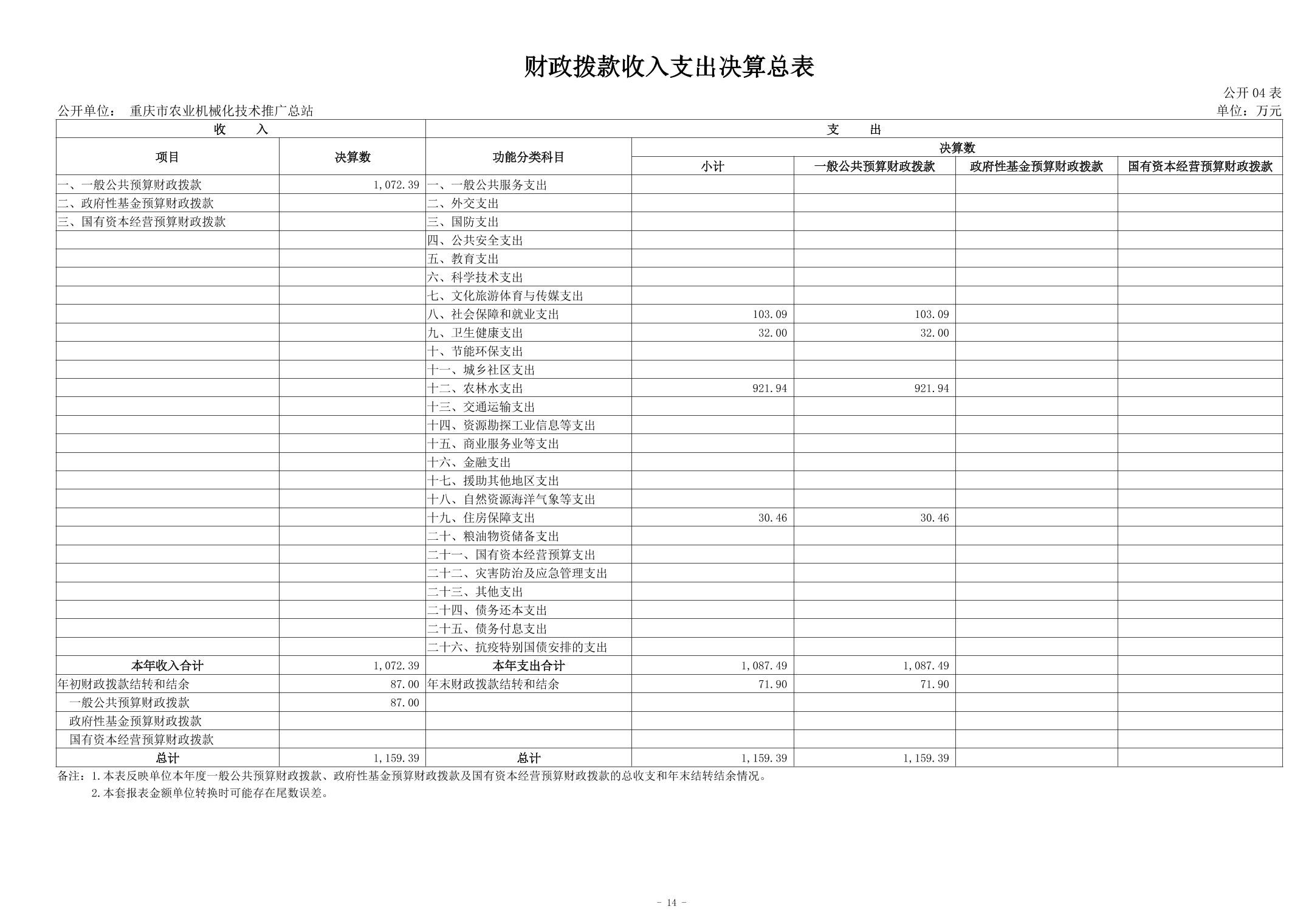 重庆市农业机械化技术推广总站2023 年度决算公开说明