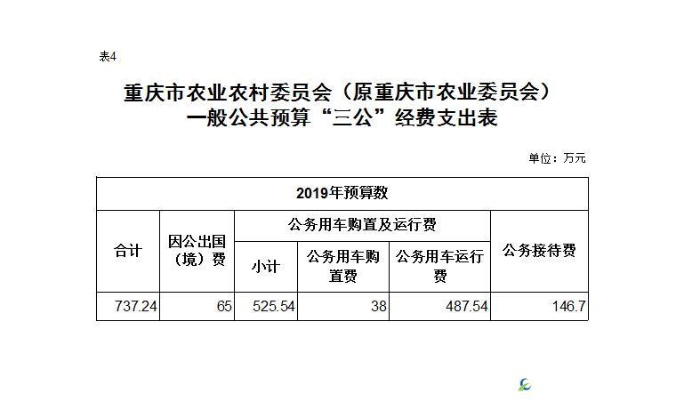 2019年“三公”经费预算737.24万元,比2018年增加49.73万元。其中:因公出国(境)费用65万元,比2018年增加2万元,主要原因是出国(境)任务量增加;公务接待费146.7万元,比2018年减少9.37万元,主要原因是例行节约,严格审核公务接待报销要件和标准;公务用车运行维护费487.54万元,比2018年增加19.1万元,主要原因是公车使用年限长,扶贫任务和指导区县农业产业发展任务重;公务用车购置费38万元,比2018年增加38万元;主要原因是车辆报废2辆,预计在2019年进行更换。