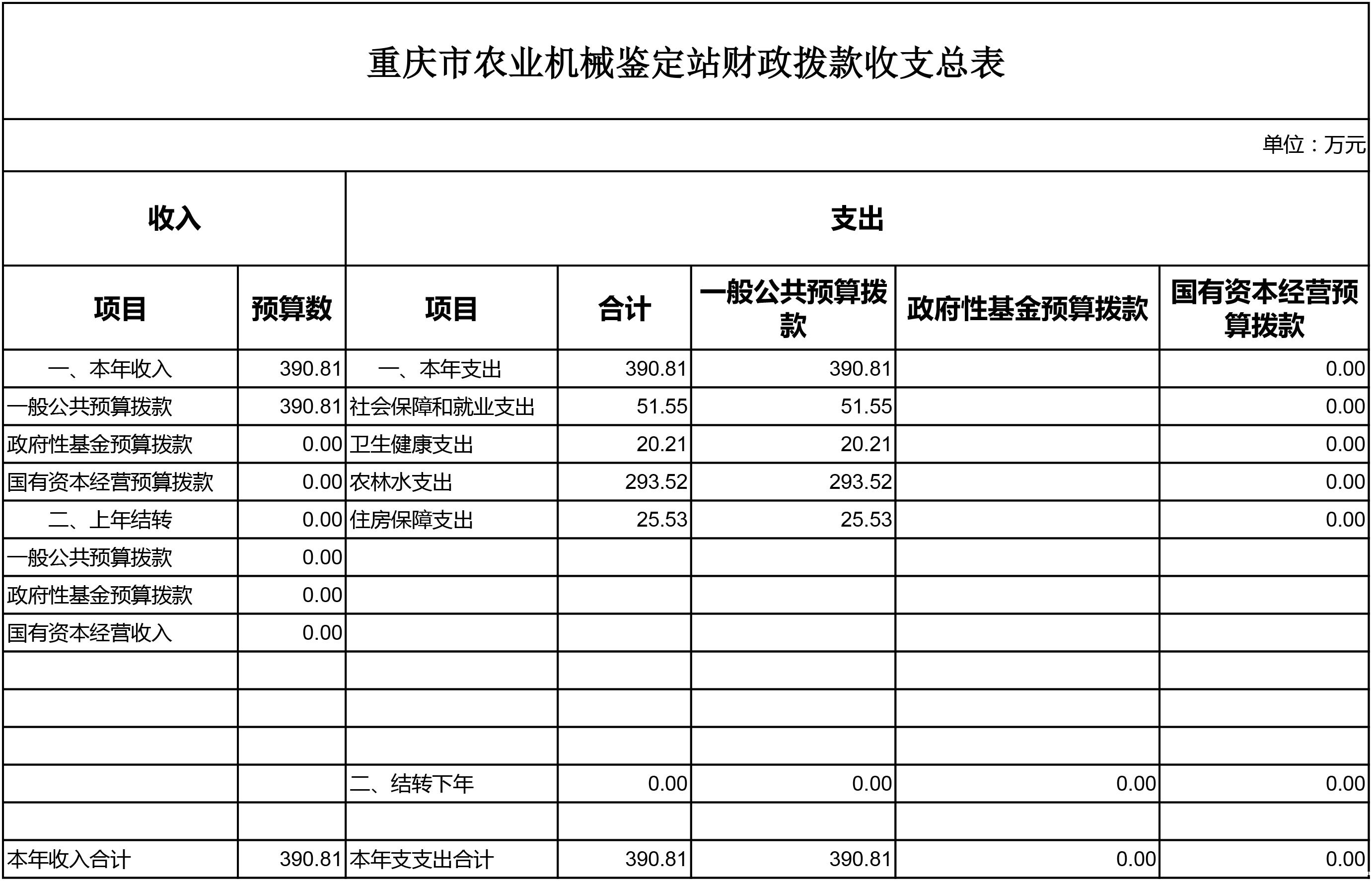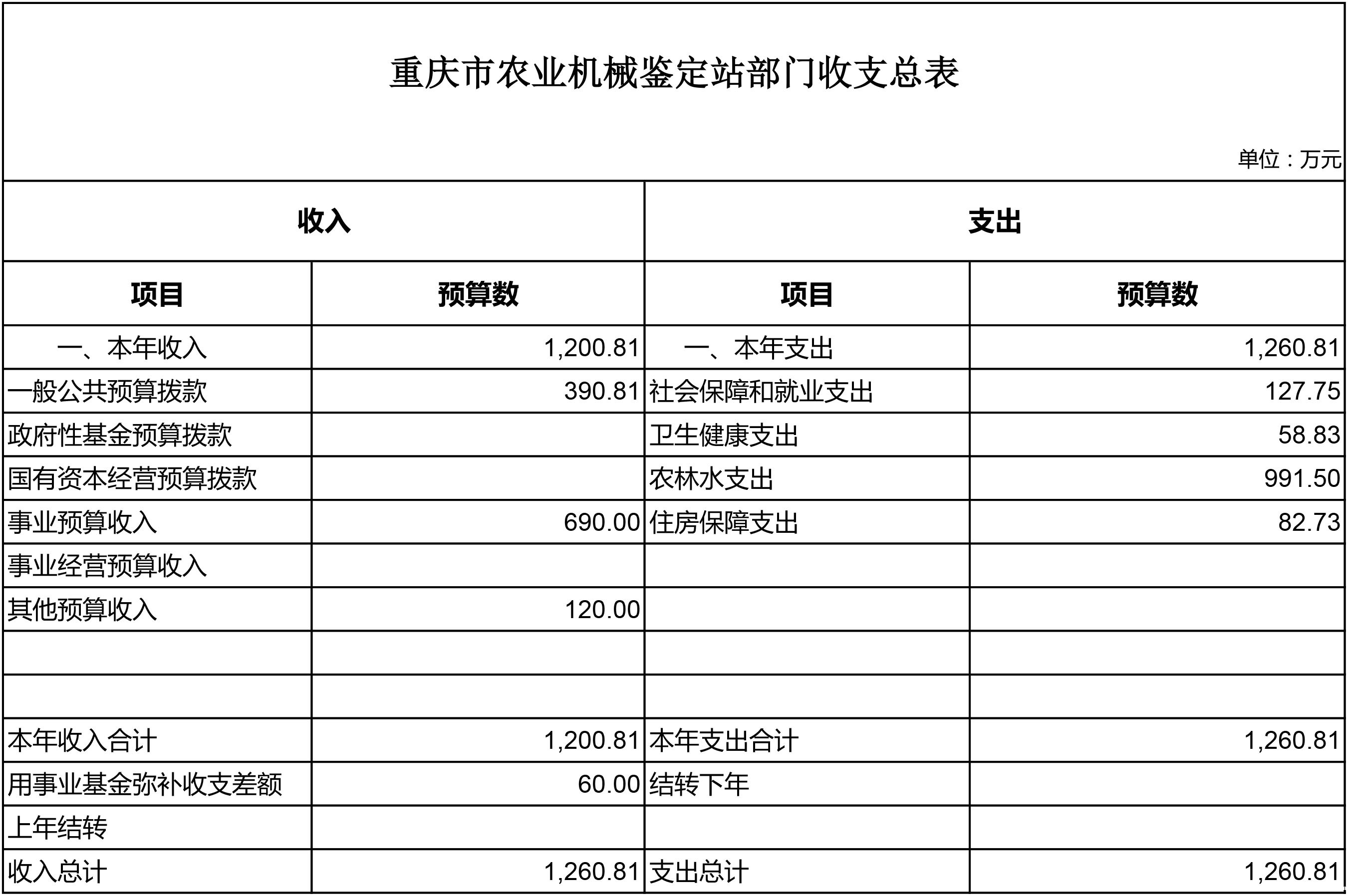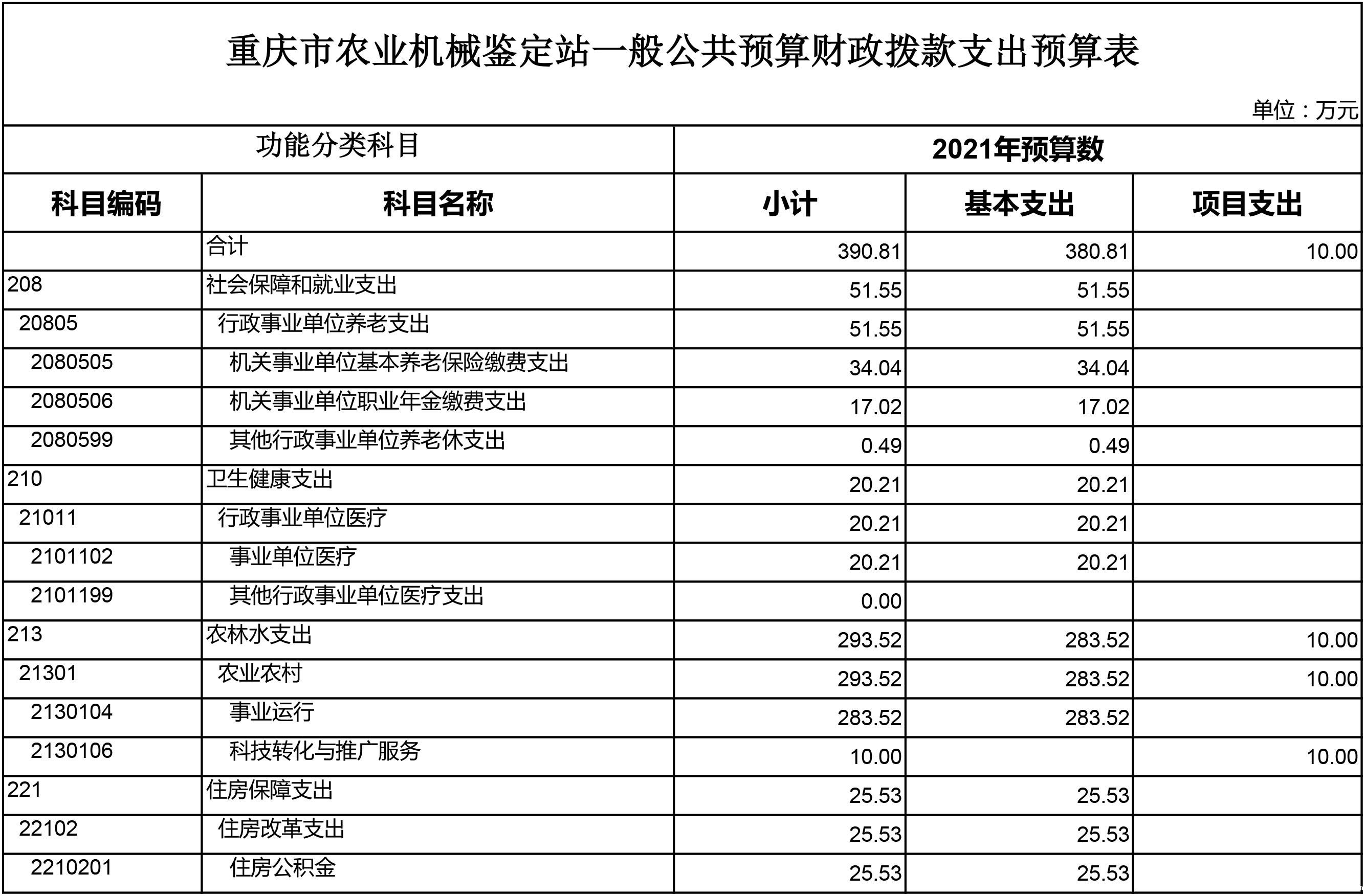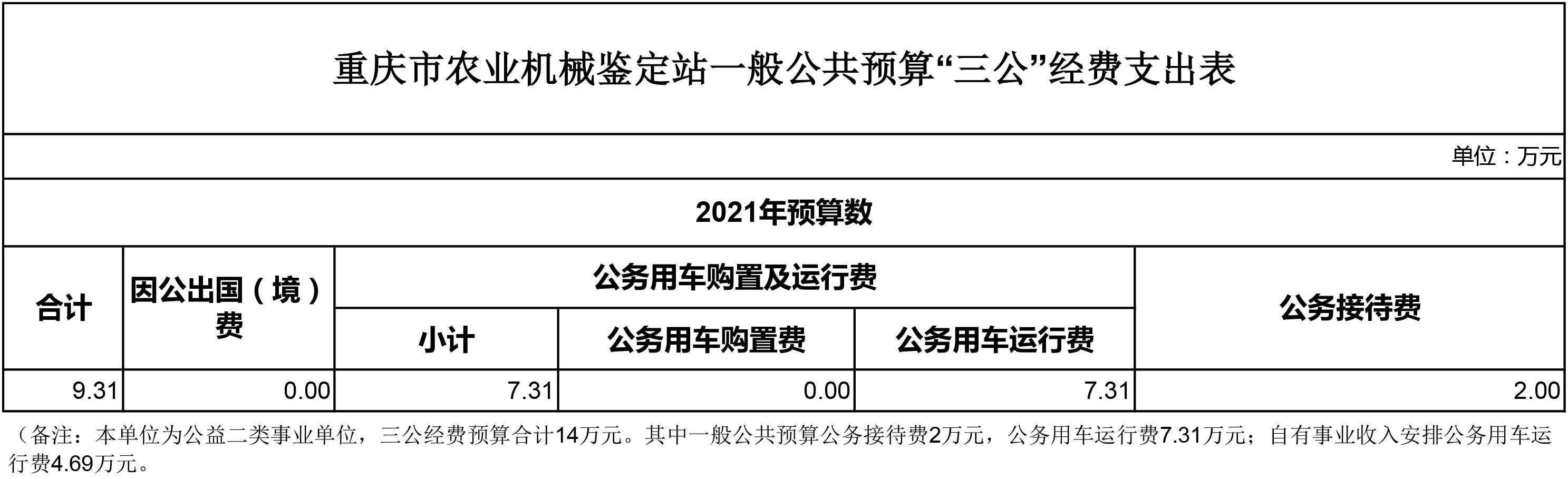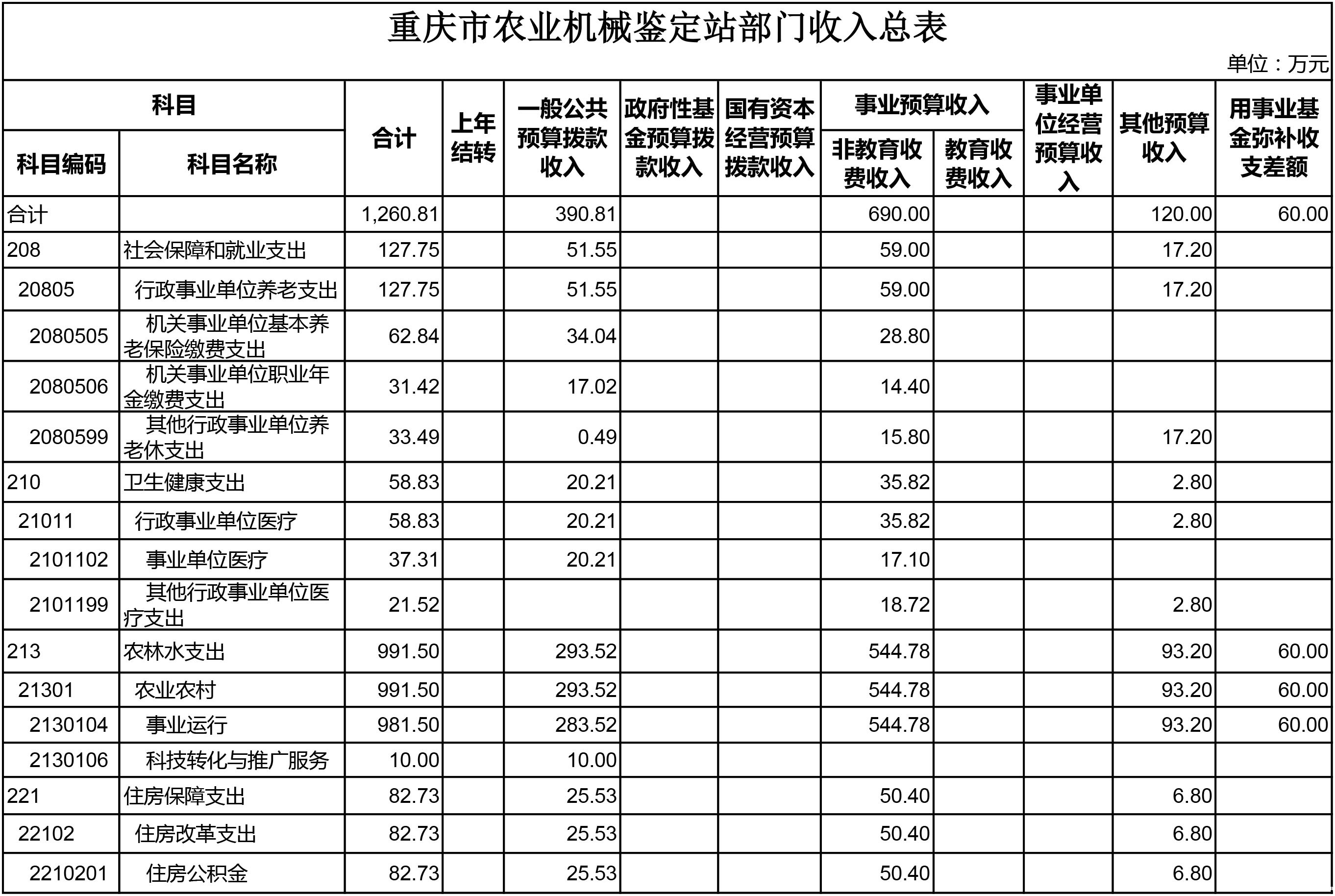 重庆市农业机械鉴定站2021年单位预算情况说明