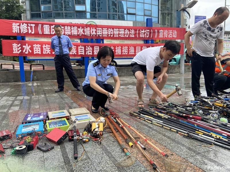 彭水自治县开展新修订《重庆市休闲垂钓管理办法(试行)》宣传和非法渔具集中销毁活动
