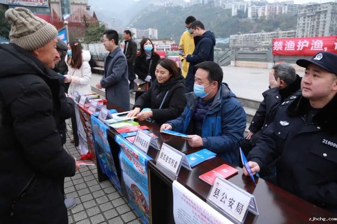 此次执法活动与现场展示同步开展,在地王广场,宣传人员通过视频播放禁渔广播、悬挂宣传标语、发放禁渔知识手册、张贴《奉节县人民政府关于奉节县长江流域重点水域全面禁渔的通告》等形式,重点宣传电鱼、毒鱼、炸鱼等违法行为的严重后果。