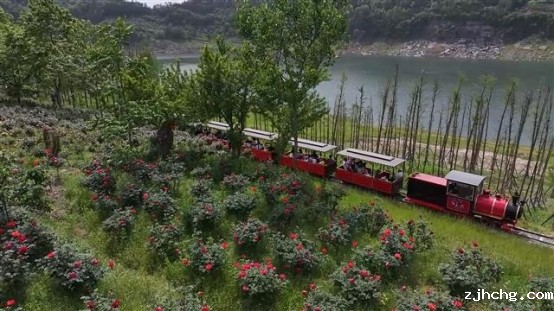 在藤子沟湖畔,观光小火车载着游客穿梭在花海山林间,成为最受欢迎的打卡项目之一;湖面上,色彩斑斓的小船随波荡漾,亲子家庭乘坐其中,尽情享受划船乐趣;湖畔露营区,烧烤架上的食材滋滋作响,香气四溢,游客们举杯畅饮,笑声不断。