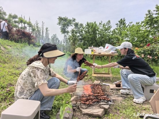 在玫瑰园里,陈女士一家正忙着烧烤:“边赏花边烧烤,这个‘五一’过得很惬意!”