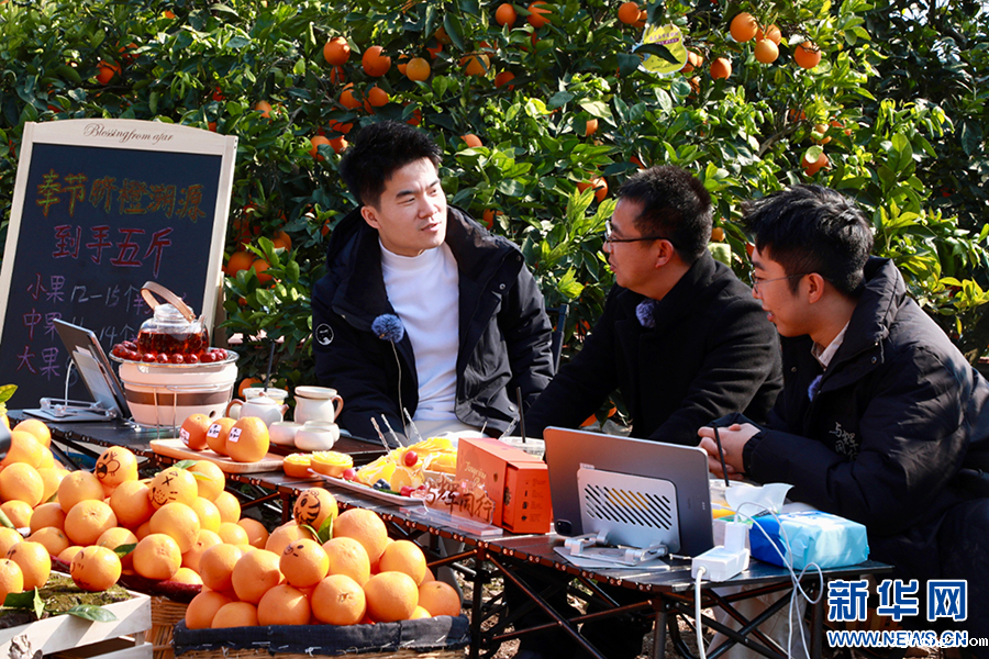 12月18日,董宇辉来渝为奉节脐橙直播带货。新华网发(重庆市商务委供图)