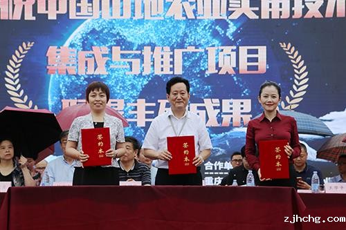 6月12日,中国农业出版社、中国畜牧业协会、重庆市农业学校共同举办的中国山地农业实用技术集成与推广项目签约仪式暨动员大会在学校运动场举行。市农业农村委总农艺师洪国伟、中国农业出版社副社长刘爱芳、农业部肉羊遗传改良专家组组长杜立新教授、北京农博力尔农牧公司技术总监王骘均博士等专家、三王牧业有限公司等企业界代表、重庆市经贸中等专业学校等重庆市农林牧渔专业教学指导委员会成员单位、重庆京玲园林工程有限责任公司等重庆乡村振兴农业职业教育集团成员单位、各界新闻媒体及重庆市农业学校全校师生共5000余人参加大会,共同见证签约仪式。