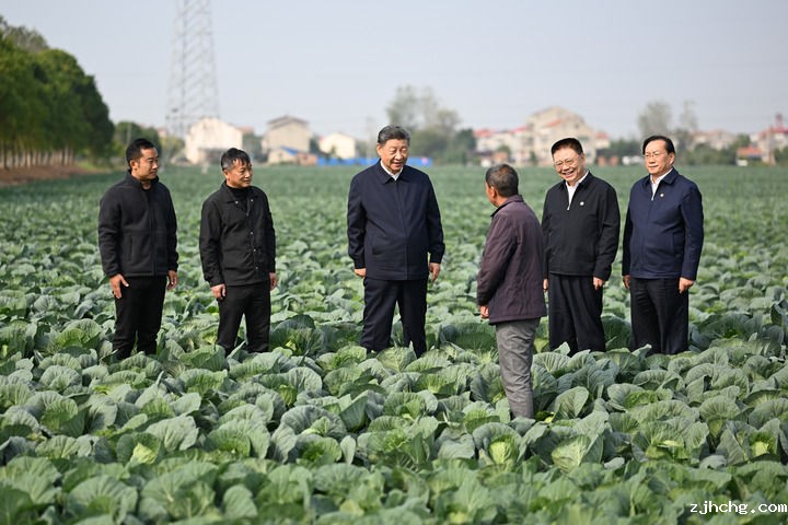 5日上午,习近平前往咸宁市嘉鱼县,首先到潘家湾镇十里蔬菜长廊考察。深秋时节,这里仍然满目青翠、生机勃勃。习近平走进田间,察看蔬菜长势,详细询问蔬菜品种、种植技术、销售等情况。他强调,农村天地广阔,农业大有可为。发展现代农业,建设农业强国,必须依靠科技进步,让科技为农业现代化插上腾飞的翅膀。他勉励当地干部群众走科技之路、质量之路、品牌之路,把蔬菜种植这个富民产业进一步做好,让更多群众增收致富。