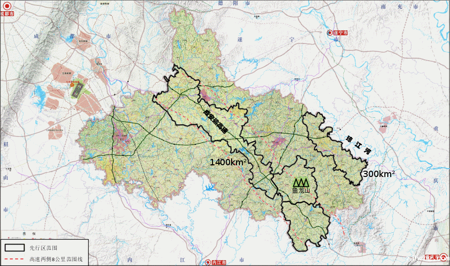 包括乐至县高寺镇、中天镇、童家镇、凉水乡、放生乡、佛星镇、孔雀乡、东山镇、回澜镇、石湍镇、双河场乡等11个乡镇,以及安岳县朝阳乡、岳源乡、文化镇、九龙乡、清流乡、护建乡、和平乡、高屋乡、李家镇、元坝镇、努力乡、合义乡、忠义乡、姚市镇、云峰乡、龙台镇、白水乡、毛家镇、东胜乡、护龙镇、兴隆镇、永清镇、鱼龙乡、乾龙乡、横庙乡、协和乡、共和乡等27个乡镇,面积共约1700平方公里。