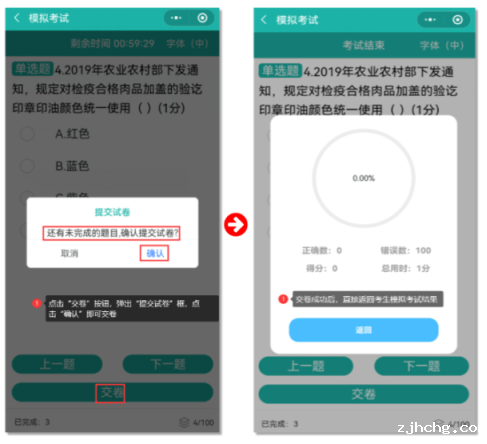 确认考核成绩合格后,考核系统按照预先设定的规则,生成生猪屠宰兽医卫生检验人员考核合格证电子版。市农业综合执法总队(市动监所)统一制作、市农业农村委颁发考核合格证,由各区县农业农村主管部门发放到生猪定点屠宰厂(场)。